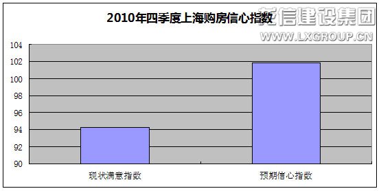 报告显示,2010年四季度上海购房预期信心指数为101.8点,高出购房现状信心指数7.5点。业内人士分析认为,上海购房者预期信心高于现状主要是出于对二次调控的看好。2010年9月29日、10月7日,中央、上海分别公布了新一轮楼市调控政策,出台了包括限购限贷限外限价等四限政策。该业内人士表示,正是出于对这一轮号称史上最严厉调控效果的看好,促使购房者未来购房信心大增。