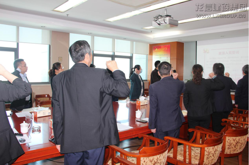 全体党员面向党旗,重温入党誓词。铿锵的誓词唤醒了每名党员“最初的记忆”,不忘初心,不改初衷。